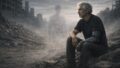 砂混じりの風が、瓦礫の隙間に落ちた記憶のかけらを撫でていった。風は、焦げた鉄と血のような匂いを運んでいた。その中に、かすかに木の焼けた香りが混じる。骨飾りが燃えた時間の断片。戦いの記憶が、今もこの土地を漂っているようだった。