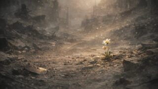 ──ねぇ、あのとき、ほんとうに、わたしはここにいたのかな。 風が、そっと吹いてた。 焼け焦げたものの匂いと、もう誰にも呼ばれなくなった時間のかけらたちが、空気のすき間に溶けて、静かに舞っていた。 遠くで、何かが崩れるような音がして、それはす...